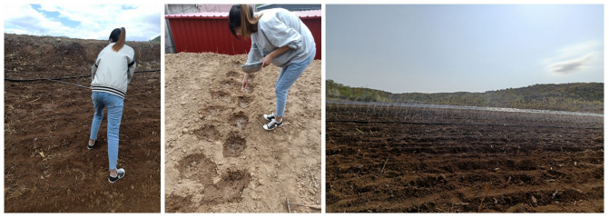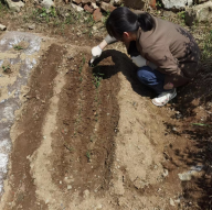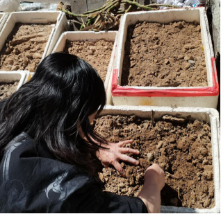 18级金融学党员刘胡兰,在五一期间帮着父母分担农活。她和父母一起为荒地除草和松土。地特别硬,用铁锹翻土的工作量很大,而且要翻得面积深一点,基本上要停下来缓一缓。第三天要进行第二轮的翻地,同时进行施粪肥,然后挖洞种土豆种子,填坑,用锹把土给压实,并做记号,以便下一颗种子选择合适的距离。