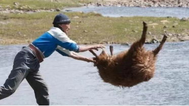 除了捡牛粪还有洗羊。到了剪羊毛的季节,这些羊的身上不仅有厚重的羊毛,还有不少在日常生活之中夹杂进去的灰尘和草屑。以前挖一个巨大水坑或者直接在河流旁,直接把羊丢下去,羊在河水中走上岸的过程中会带动水流,这样就能很好的清洗掉身上大部分的灰尘碎屑,而且经过浸湿的羊毛在剔除的时候也会更加的容易。现在洗车用的水枪,里面灌了消毒水,洗澡消毒两不误。