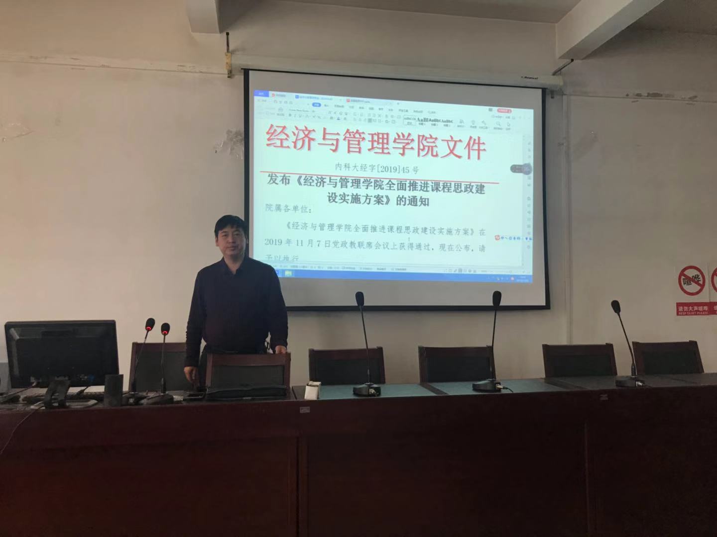 2019年11月21日下午,经济与管理公司党总支组织全院教职工在腾飞楼A413政治理论学习,会议学习了《公海gh555000aa线路检测全面推进课程思政建设实施方案》。