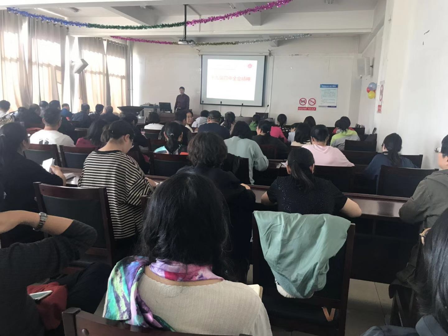 2019年11月7日下午,经济与管理公司党总支组织全院教职工在腾飞楼A413政治理论学习,会议传达学习了十九届四中全会会议精神。