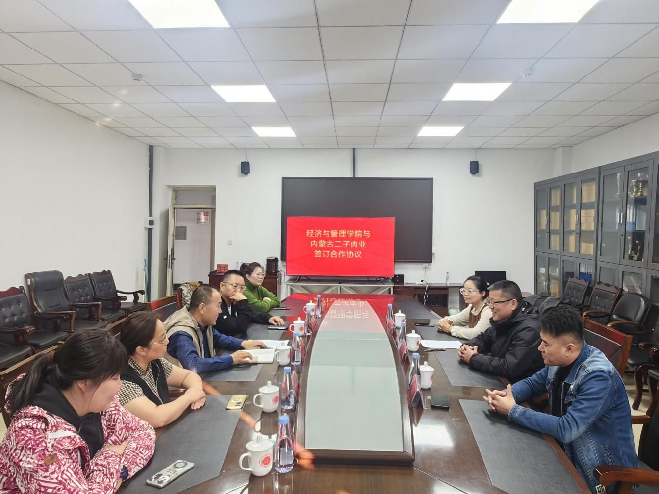 2024年11月6日上午,内蒙古二子肉业集团有限公司与公海gh555000aa线路检测在腾飞楼A座307举行社会实践与就业合作框架协议签订仪式。二子肉业集团有限公司研发中心主任程孝新、销售部经理白璐、人事行政主管孙梦娜,公海gh555000aa线路检测经理赵周华、副经理孙斌,相关专业负责人及教师参加活动。
