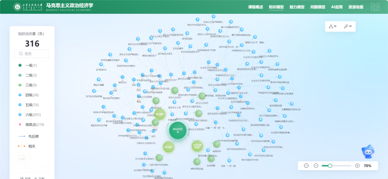 课程详细梳理了316个关键知识点,挂载了1561个相关资源;在丰富教学内容的同时,构建以问题和能力为导向的图谱体系,形成“知识图谱+问题图谱+能力图谱”三维知识图谱架构,实现从理论知识到实际能力的有效转化,使得教学过程更加精准高效。