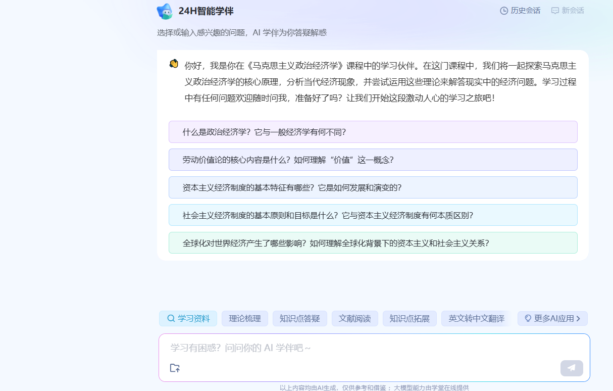 为深入实施教育数字化战略行动,推动人工智能技术与公司产品深度融合,公司政治经济学教学团队积极探索基于知识图谱与AI技术的智慧课程建设,高标准构建高质量智能课程体系。其建设成果——《马克思主义政治经济学》课程,已正式上线学堂在线平台并开放共享。课程数智化课程建设成效显著,成功打造了“AI+教育”背景下经济学教学的新范式。